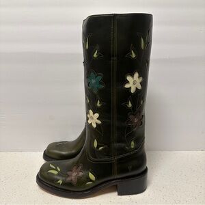 Frye Campus 14L Anthropologie Floral Olive Green Boot NIB 9.5