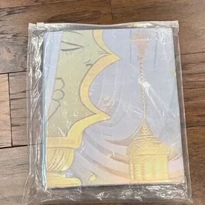 Stunning Arabian Nights backdrop with purple curtains and gold accents. Perfect for themed events. Brand new. Never used. Still in bag. Iron Per instructions to get wrinkles out.