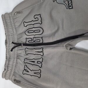 Soft and cozy sweatpants for kids. Features elastic waistband and drawstring. Stylish Kangol logo on front.small or kids large