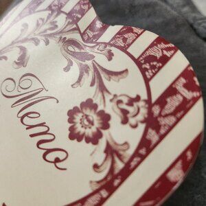 One Small Heart-Shaped Memo Pad: A few pages missing - originally 90 pages, approximately 81 remain. Shows some wear such as some dents on front and back cover of memo pad from storage (top left, middle front, top left back, top right back/inside back cover has a dent and creases. Approximate measurements of memo pad - 4.75"L x 5"W.