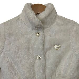 Juicy Couture Kids Girls Size 7 Cream Plush Faux Fur Peacoat Jacket Gold Buttons Lined