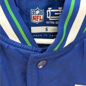 Show your team spirit with this Seattle Seahawks bomber jacket. Featuring a bold blue color and iconic logo, it's perfect for any fan.