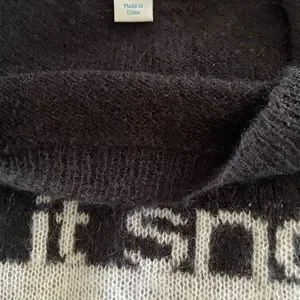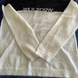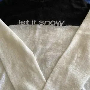 Stylish crew neck sweater. Features 'let it snow' text. Perfect for cozy days.