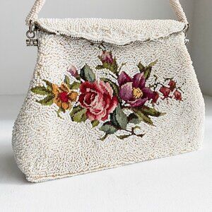 Vintage fully beaaded floral Crosstich Wedding Special Occasion Purse