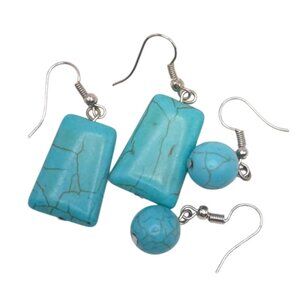 Elevate your look with these handcrafted turquoise stone earrings set. Featuring unique rectangular and round stone designs, these lightweight pieces add sophistication to any outfit.