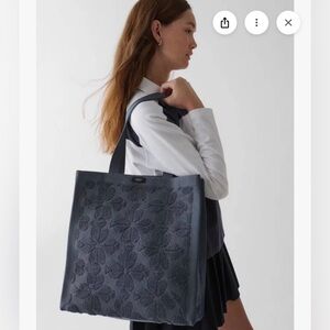 Kate Spade Brooke Spade Flower Patterned Terry Large Tote, Blazer Blue NEW NWT
