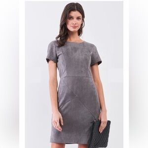 NWT 41 Hawthorn Faux Suede Gray Sheath Paneled Dress Size Medium Office Chic