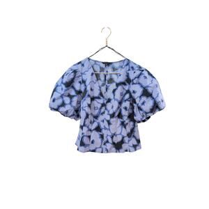 Banana Republic Blue Floral Puff Sleeve Top Size 10 NWOT