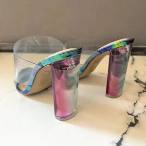 ALDO PVC Clear Double Strap Green Iridescent Mermaid Sandal Heels Size 8.5