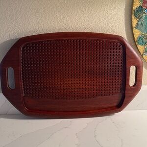 Beautiful Danish teak carving board. Excellent condition except for a crack on the back as shown. Clean and smokefree. Measures 21.5” long and 13” high. May not be able to bundle due to size.