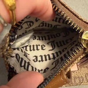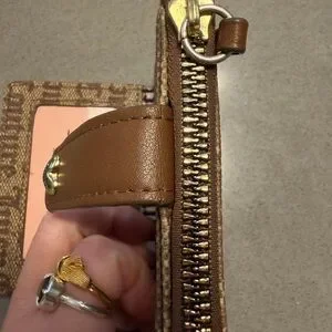 JUICY COUTURE GOTHIC BROWN LOGO CARD CASE EUC never used pockets are still stiff zipper moves perfectly no corner rubbing. Comes with original card still inside.