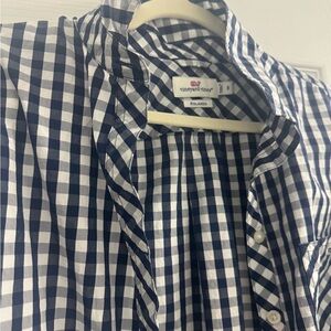 Navy and white plaid shirt by Vineyard Vines. Relaxed fit with classic collar. Size 8.