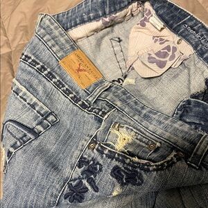 Vintage Y2K American eagle blue Floral Embroidered Blue Jeans