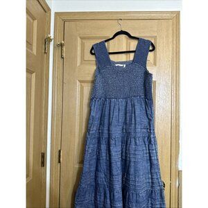 Soft Surroundings Chambray Smocked Tiered Maxi Dress Women’s Petite XL Blue