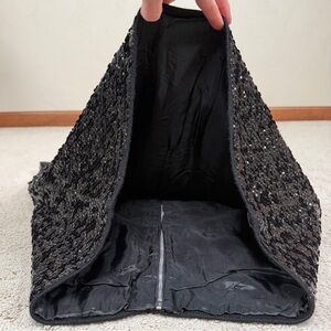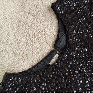 Some signs of wear at armpits and lining due to age and use. A couple of small areas of what appears to be minor super glue residue from a previous fix (see closeup photos). As this item is vintage and heavily embellished, there may be areas with missing sequins / beads, but due to the entire item being black and so heavily embellished, these do not detract from overall appearance.