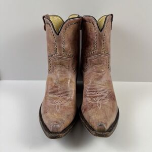 Sundance Womens Beige Studded Leather Western Cowgirl Ankle Boots Size 8