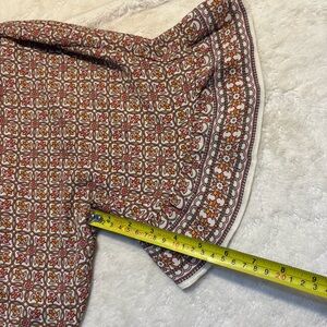 Max Studio Top XL Geometric Beige Orange White Blouse Flowy front Ties Buttons