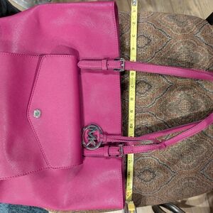 Chic Michael Kors shoulder bag in vibrant fuchsia. Features signature MK charm. Minor discloration on the bottom. Perfect for adding a bold touch to your look.