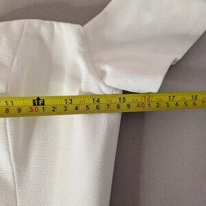 This (NWT) Dress The Population Bailey Women's Off The Shoulder semi-sweetheart neckline dress in Medium size is a versatile and elegant option for various occasions. The off the shoulder design, sleeveless style, corset bodice (with internal boning) and knee-length hem give it a sophisticated air, making it perfect for weddings, parties, or formal events. The ivory (off-white) color and solid pattern add a touch of purity and simplicity to the dress, fitting for the minimalist theme. Made from a polyester blend fabric with a woven texture, this dress exudes quality and refinement, ideal for the summer, fall, or spring seasons.