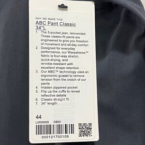 Lululemon ABC Classic-Fit 5 Pocket Pant 44W X 34L Color Obsidian NWT
