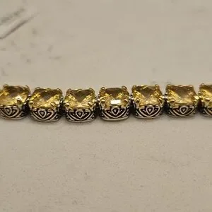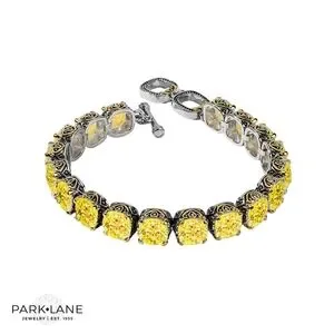 One of the most outstanding Park Lane pieces was the Family Signature Bracelet offered in an array of gemstone colors. The Signature bracelet is coveted as one of our icon designs. In its honor we have redesigned the bracelet with a modern and contemporary spin. The baby sianature bracelet is created with over 40 carats of yellow canary cz's. The setting is impeccable by combininc the highest in a gold finish and white silver with beautiful scrolling. Measuring 7 %" Long. Toggle closure