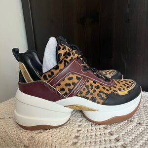 Michael Kors Cheetah Print Olympia Trainer Platform Sneaker HAIRCLIF LTHR sz 10