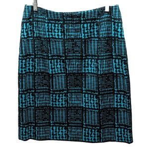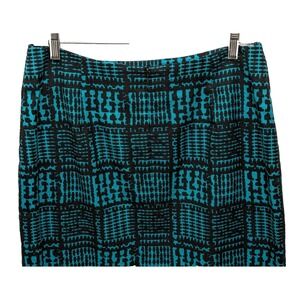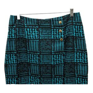 Carlisle Skirt 8 Turquoise Black Abstract Plaid Cotton Lined Dark Academia Prep