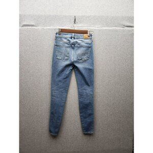 These American Eagle Dream Jeans offer a modern skinny fit with a classic blue denim look. The distressed details provide a stylish, casual aesthetic suitable for versatile wear.