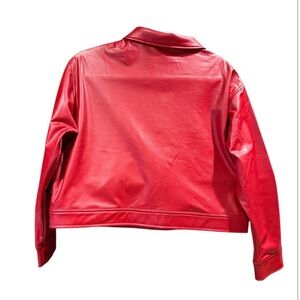 Super soft faux red leather button down cropped jacket. Size Small