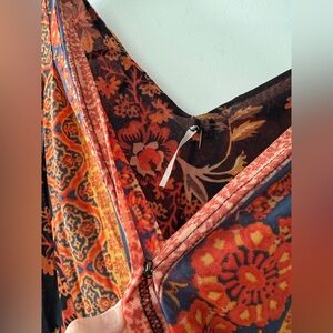 Free People Havana Black Floral Boho Sleeveless Surplice Top Size Medium