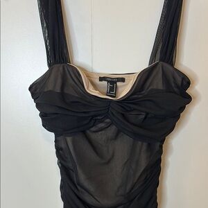 NWT Stylish black mesh dress with elegant ruching. Ideal for evening wear.