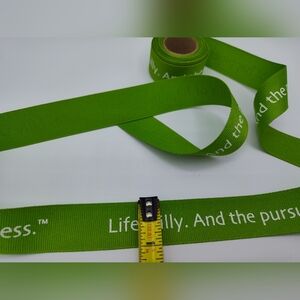 Offered by Lux Ribbon Room, this is an authentic 2-yard cut of Lilly Pulitzer branded grosgrain ribbon in the iconic green colorway, featuring the beloved phrase: “Life. Lilly. And the pursuit of happiness.”