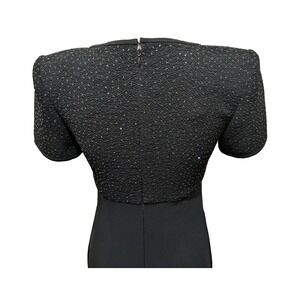 DW3 David Warren Dress 4 Black Sheath Midi Sparkle Bodice Solid Skirt Vintage