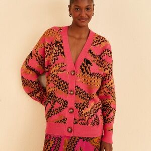 Farm Rio Pink Croco Knit Cardigan