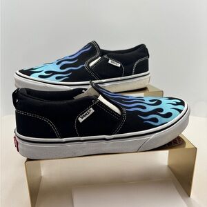 Vans Asher slip ons Kids Black and Blue Flame Sneakers