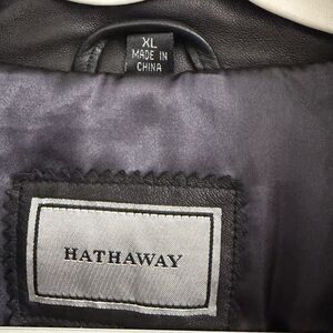 Hathaway Jacket Mens XL Black Leather Bomber Coat Vintage 90s Full Zip Pockets