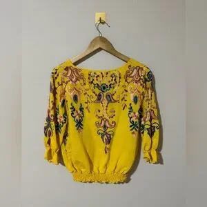 Sapphire Small Yellow Floral Paisley Embroidered Yellow Top. In excellent condition.