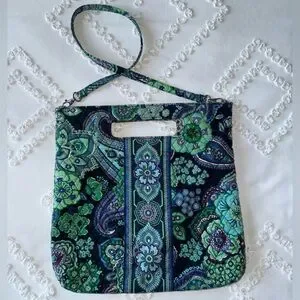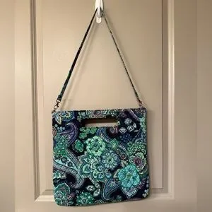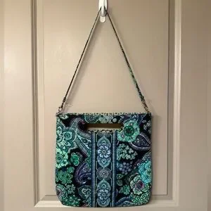 2009 Vera Bradley bag featuring the retired vibrant blue and green floral pattern, “blue rhapsody”. Perfect for adding a pop of color and nostalgia to any outfit.
