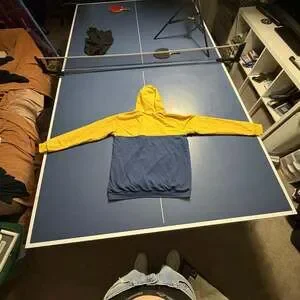 Good pre-owned condition. Shows light signs of normal wear but no major stains, holes, or damage. Material: 65% Polyester, 35% Cotton.