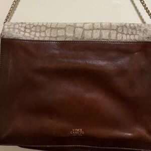 Vince Camuto Tan and Brown Croc-Embossed Shoulder Bag