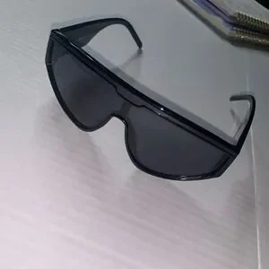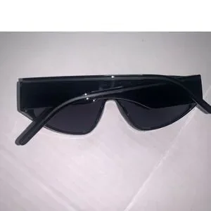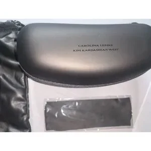 Keywords: Carolina Lemke sunglasses, Kim Kardashian West eyewear, shield sunglasses, black sunglasses, designer sunglasses, sunglasses case, cleaning cloth, modern, statement sunglasses, chic accessory, fashion eyewear