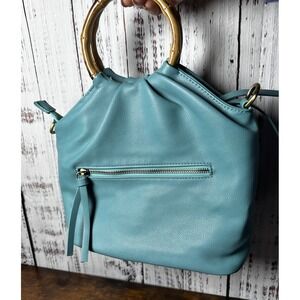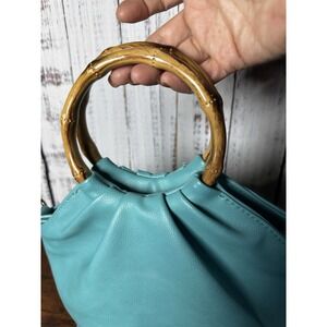 JOY SUSAN Stacey Bamboo Hand Tote Bag Vegan Leather Turquoise New Crossbody