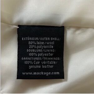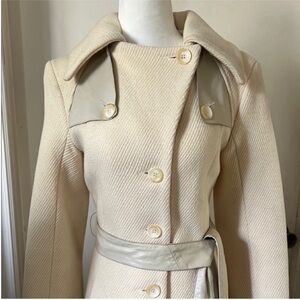 Mackage | Women’s Size S Cream Wool Coat with Leather Trim Accents + Belt