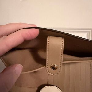 Elegant Coach wallet featuring pink flowers on a tan background. Classic and stylish.
