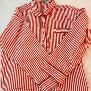 Women’s J Crew red and white striped cotton pajama top and bottoms (pants). Features button detailing.