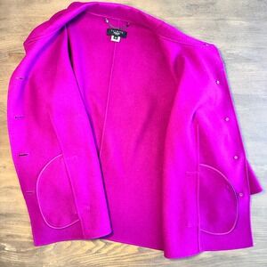 Talbots Womens 14W Pink 100% Wool Button Front 3/4 Sleeve Blazer Jacket Magenta