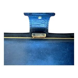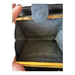 Vintage CHANEL bi-fold compact wallet in black leather with kisslock coin pocket