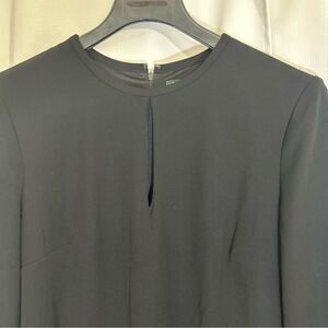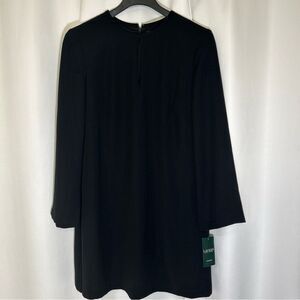 NWT LAUREN Ralph Lauren Isaak Crepe Keyhole Dress Sz 14 Solid Black Long Sleeve