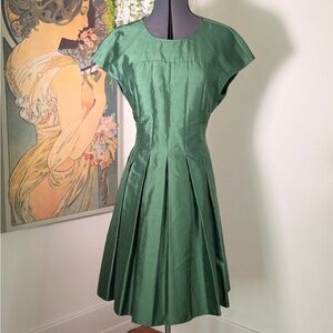 Armani Collezioni Green Cotton Silk Box Pleated Short Dress Size 14