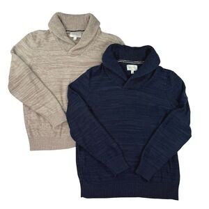 Sun+Stone Lot of 2 Mens Shawl Collar Sweater Chunky Knit Pullover Tan Blue XL